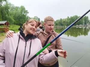 «Ми з сином на фестивалі вперше. Він гіперактивний, збираючись думав, що буде просто сачком тягати рибу, а тут з’ясувалось, що ще ловити треба» – посміхаючись розказує про досвід перебування 7-річного Захара на фестивалі спортивної рибної ловлі для сімей Захисників та Захисниць України Тетяна Цехотська.- Класно, що тут одночасно можна і рибу ловити, і на майстер-класах побувати. Він вже скрізь побував, а зараз побіг грати у футбол».