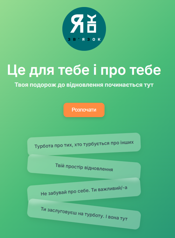 В межах реалізації проекту «Зміцнення національних та місцевих механізмів запобігання та реагування на СПК в Україні» розроблено цифровий застосунок «Зв’ЯЗОК» – інтерактивний інструмент для підтримки психоемоційного стану фахівців, які працюють із постраждалими від насильства за ознакою статі та СНПК. Застосунок дозволяє зменшити симптоми професійного вигорання, зберегти емоційний ресурс та зміцнити внутрішню стійкість.