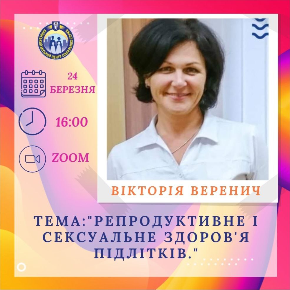 Спікер: Веренич Вікторія Іванівна – лікар -гінеколог «Дружньої клініки для молоді» Шевченківського району м. Києва, Національна тренерка з надання медико-соціальної допомоги підліткам та молоді, консультантка проекту Support me.