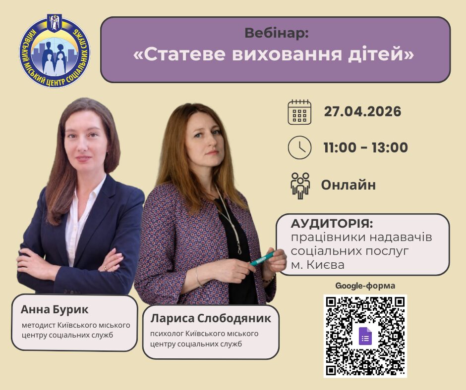 Київський міський центр соціальних служб запрошує взяти участь у вебінарі: «Статеве виховання дітей».