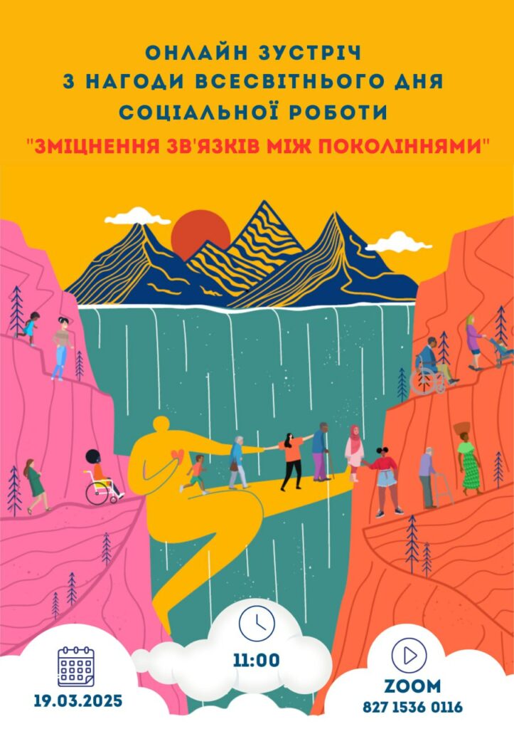 З нагоди Всесвітнього дня соціальної роботи Київський міський центр соціальних служб організовує онлайн зустріч «Зміцнення зв’язків між поколіннями». Захід відбудеться у зум-форматі 19 березня об 11.00.