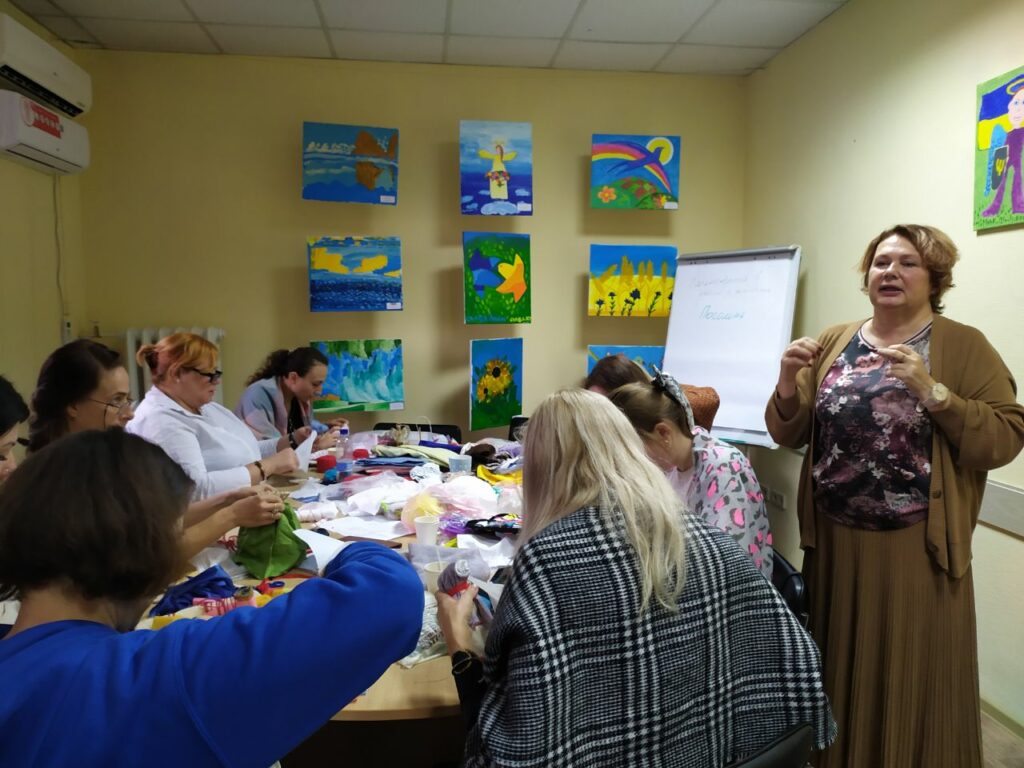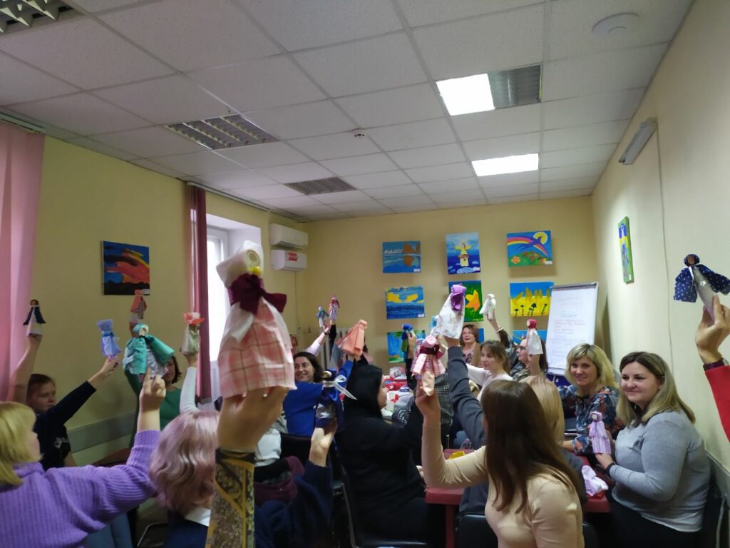 «Слухай себе!», «Впорядкуй думки!» «Будь в контакті з собою!»-такі послання від ляльок отримали учасники арт-практикуму: «Лялькотерапія в роботі з жінками». Захід відбувся 25 жовтня на базі КМЦСС і це було друге заняття в рамках дев’ятого соціального арт- проєкту «Арт-терапія: можливості для підтримки особистості», що реалізується у співпраці з ГО «Східноукраїнська асоціація арт-терапії». Арт-практикум проводився для працівників соціальної сфери столиці, в тому числі працівників мережі центрів соціальних служб.