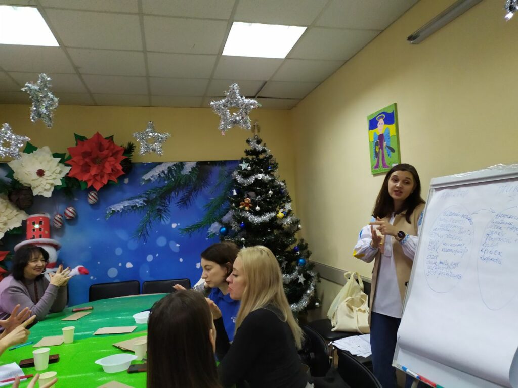 «Сьогодні ми подосліджуємо власну чуттєво-асоціативну частину. Будемо працювати з підсвідомим. Потрібно розуміти, що реакція при роботі з глиною може бути різною, адже це архетипічний материнський контейнеруючий матеріал»-розпочала знайомство з глиною практичний психолог, арт-терапевт Вікторія Віткалова. 27 грудня 2023 року на базі Київського міського центру соціальних служб відбувся арт-практикум на тему: «Глина з характером: техніки стабілізації». Вікторія Віткалова майстерно ділилася своїм досвідом використання глини як засобу арт-терапії з надавачами соціальних послуг столиці (в тому числі працівниками мережі Центрів соціальних служб м. Києва).