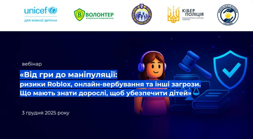 За ініціативи надавачів соціальних послуг Київський міський центр соціальних служб організував проведення вебінару: «Від гри до маніпуляції: ризики Roblox, онлайн-вербування та інші загрози. Що мають знати дорослі, щоб убезпечити дітей».