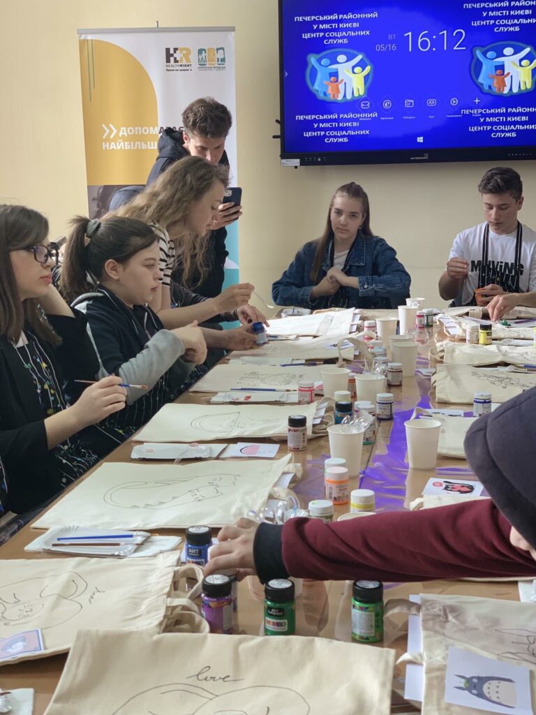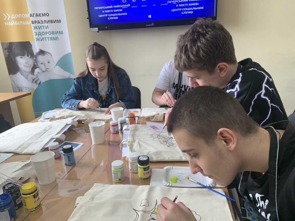 Свій маленький вклад нехай не в зміну ситуації, але в те, щоб вона не посилювалась мали можливість зробити діти отримувачів послуг Печерського районного у місті Києві центру соціальних служб завдяки Благодійному фонду «Шанс на зміни», які надали таку можливість та провели чудовий майстер-клас із розпису сумок.