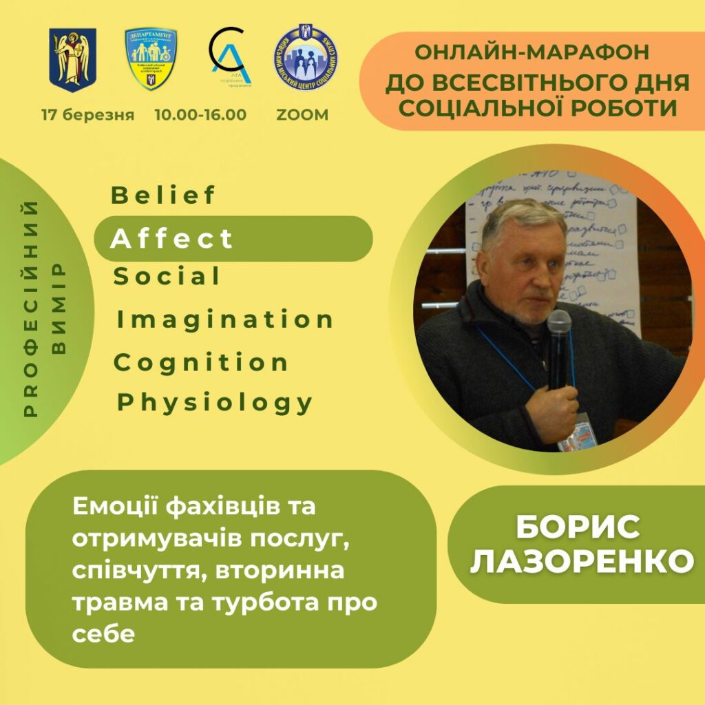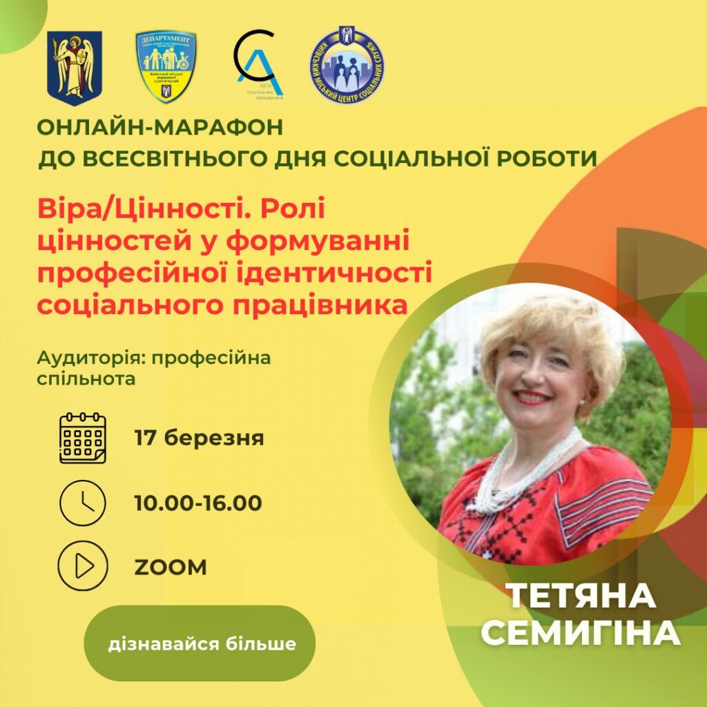 17 березня Київський міський центр соціальних служб спільно з ГО Ліга соціальних працівників м. Києва за сприяння Департаменту соціальної та ветеранської політики КМДА проводить онлайн-марафон лекцій та професійних діалогів, присвячений Всесвітньому дню соціальної роботи.
