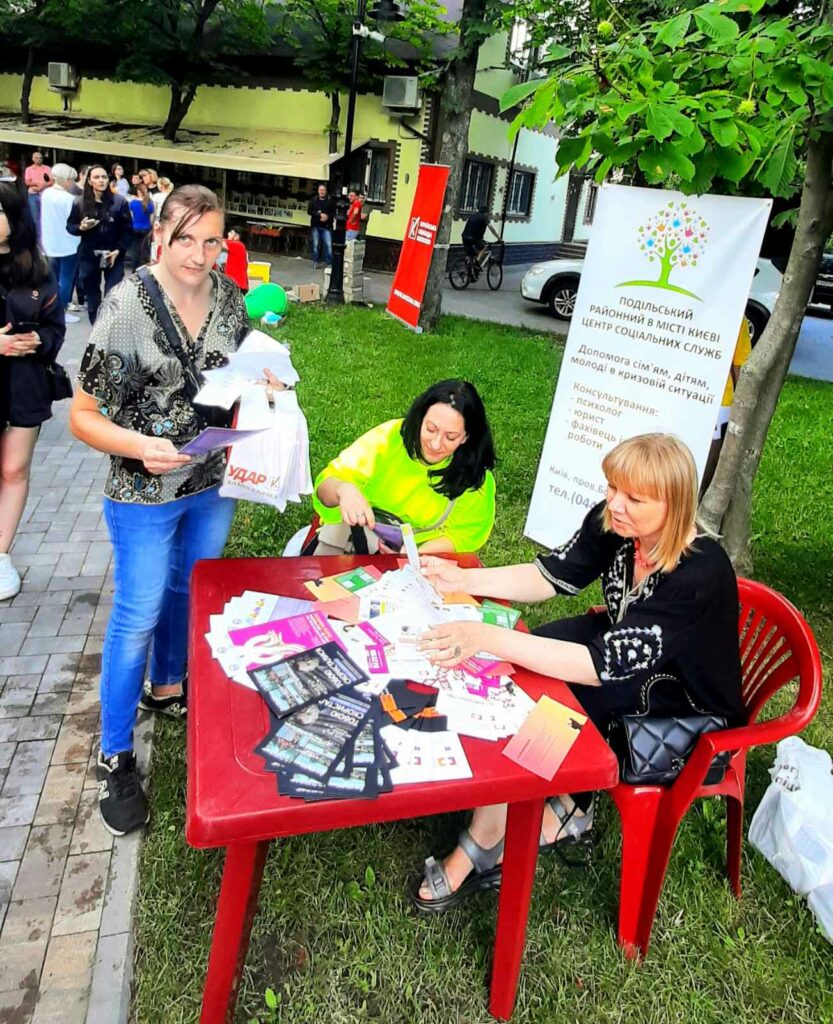 В Подільському районі пройшов захід «Поділ безпечний». Спеціалісти Подільського районного в місті Києві центру соціальних служб разом з партнерськими організаціями провели захід для запрошених дітей із сімей, що опинились в складних життєвих обставинах. Від Центру були присутніми представники Мобільної бригади з питань домашнього насильства та торгівлі людей, які всім зацікавленим надавали консультації та інформаційні буклети.