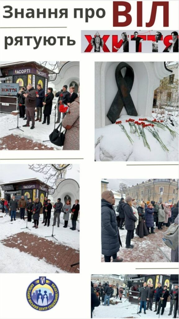 До Всесвітнього Дня солідарності з людьми, які живуть з ВІЛ, 1 грудня 2023 року в Києві біля пам’ятного знаку «Червона стрічка» за участі представників провідних державних установ, міжнародних та всеукраїнських ВІЛ-сервісних організацій була проведена акція.