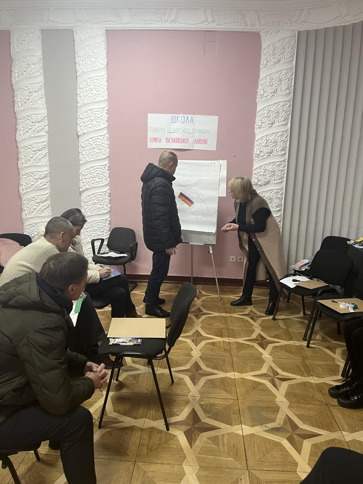 У суботу в Солом’янському районному в місті Києві центрі соціальних служб відбулося перше заняття Школи “Крила батьківської любові”. Школа спрямована на підвищення батьківського потенціалу розлучених батьків і батьків, які знаходяться у процесі розлучення. На заняттях обговорюватимуться проблеми виховання дітей у груповому форматі. Батьки навчатимуться зберігати психічне здоров’я дітей завдяки розвитку й вдосконаленню батьківської компетентності. На першій зустрічі учасники із задоволенням та відповідальністю поставились до знайомства, створення правил і визначення запитів. Під час заняття панувала атмосфера доброзичливості, взаємодопомоги та взаємопоразуміння. Групу ведуть психолог Інна Кузнєцова та фахівець із соціальної роботи Людмила Лиса