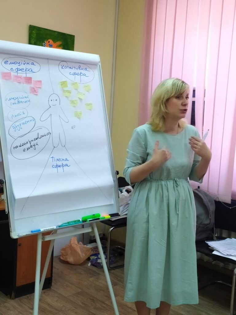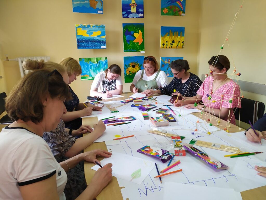 «Ми як частина соціуму зараз нестабільні, проте як працівники соціальної сфери ми працюємо з людьми, стикаємось з їх травмами. Проте один в полі не воїн, коли океан горя навколо. Як фахівцям, щоб ефективно та якісно надавати послуги іншим, нам дуже важливо дбати про себе, вміти діагностувати свій стан і вчасно надавати собі допомогу, забезпечувати себе «пальним»- ресурсом для життя та праці» – йшлося на зустрічі, що відбулася 25 травня на базі Київського міського центру соціальних служб за участі психологів закладів соціальної сфери столиці. Це був тренінг з навчання проведення заходів з профілактики емоційного вигорання засобами арт-терапії.