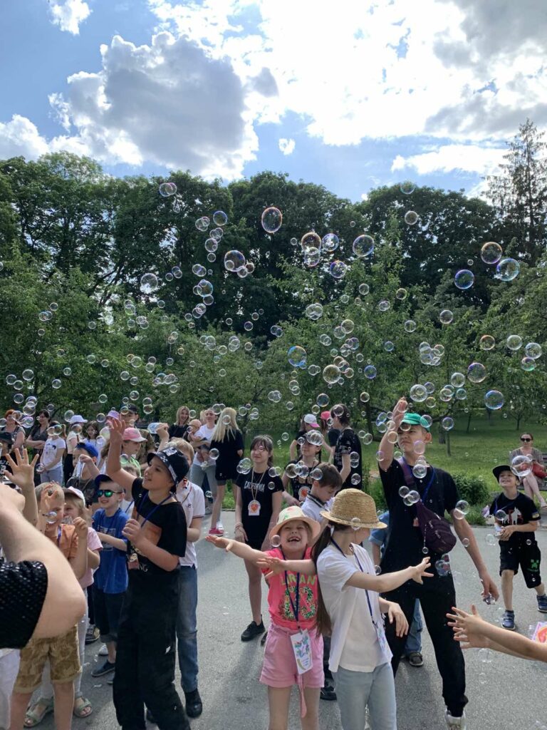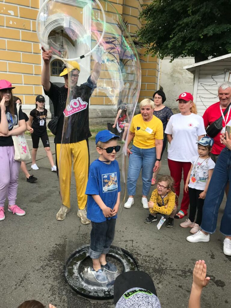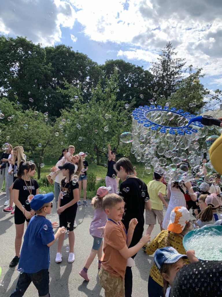 У пізнавально-розважальній частині свята для дітей з внутрішньо переміщених сімей, дітей-сиріт та дітей, позбавлених батьківського піклування було проведено квест та шоу мильних бульбашок.