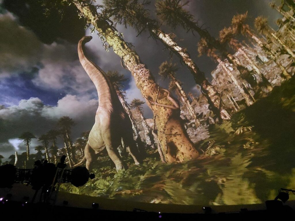 історію виникнення динозаврів – починаю від яйця, дізналися, як вони еволюціонували, і чому вони вимушені були зникнути. “На великому куполі планетарію, коли картинка величезна, наближена до тебе відчувається неначе ти поринаєш у той світ, де динозавр проходить зовсім біля тебе”-