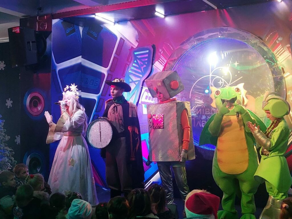 з Дракошою – символом 2024 року, а також його помічниками– роботом, сніговою королевою, хранителем часу, Лео та звісно Санта Клаусом. Під зустрічі у планетарії діти мали можливість побачити