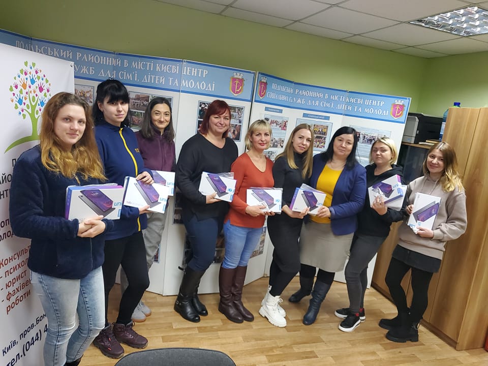 Спеціалісти Подільського районного в місті Києві центру соціальних служб висловлюють щиру вдячність за надані для підтримки їх професійної діяльності планшети в рамках проекту «Моніторинг потреб та підтримка дітей в умовах війни» за сприянням Представництва Дитячого фонду ООН Юнісеф.
