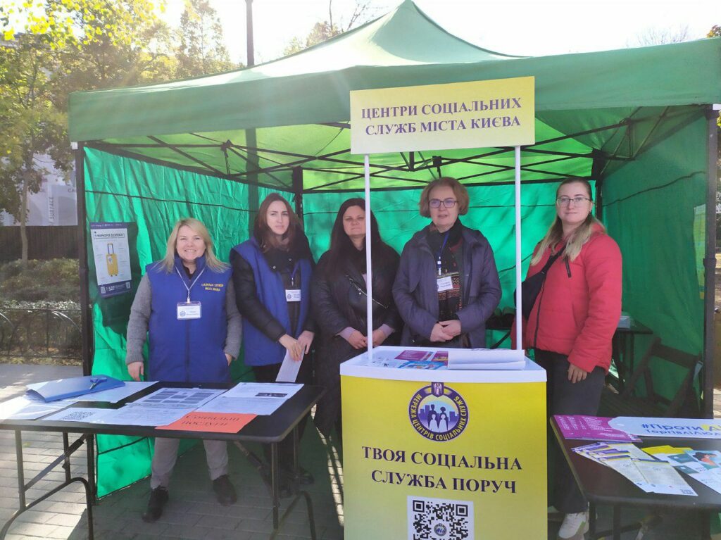 Протягом заходу тривала робота інформаційно-консультаційного пункту з питань запобігання та протидії торгівлі людьми – консультування киян щодо ідентифікації торгівлі людьми та соціальних послуг, які надаються постраждалим особам. Також тут кожен зміг отримати вичерпну та кваліфіковану інформацію про діяльність та послуги центрів соціальних служб для всіх киян.