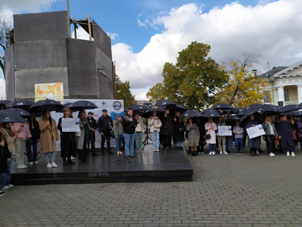 Захід розпочався з мовчазної ходи колони, куди доєдналися студенти закладів вищої освіти м. Києва, представники громадських організацій, що здійснюють соціальну роботу за напрямом протидії торгівлі людьми, а також представники територіальної громади.