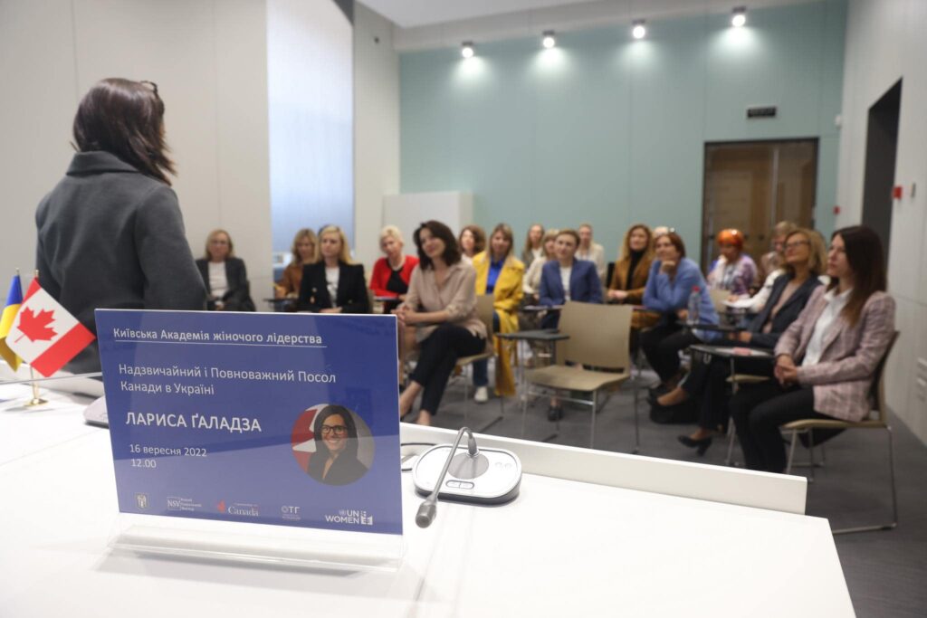 Цього разу, 16 вересня, в гості до академії завітала пані посол Канади в Україні Лариса Галадзе. Пані Лариса глибоко, щиро і неформально відповіла на питання присутніх щодо змін іміджу України та українок в світі, про власні почуття напередодні та в перші дні повномасштабної агресії, про гендерні особливості життя в громадах Канади та України, поділилась власним досвідом побудови партнерських стосунків у родині і подолання викликів мами 3-х дітей. Пані Лариса Галадзе в своїй промові висловила думку, що наразі народ України сприймається в світі як джерело цінностей та натхнення!