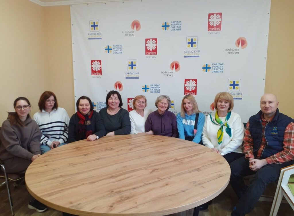 Друга частина методичної екскурсії відбулася у Благодійному фонді «Карітас-Київ» (вул. Максима Берлінського, 15), однієї з найбільш потужних благодійних організацій, яка вже понад 30 років допомагає людям у складних життєвих обставинах. Спеціалістів соціальних служб зустріли заступник директора фонду Кочубей Алла Миколаївна і відповідальний за зв’язки з державним сектором пан Владислав.
