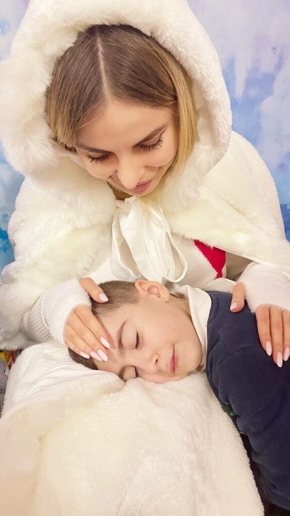На фото представник БФ “Здоровий Всесвіт” дарує тепло свого серця маленькому хлопчику, учаснику заходу