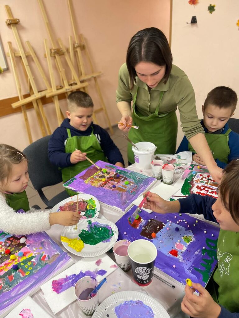 На святковому майстер-класі до Дня художника діти малювали тортики, тістечка та інші смаколики — і все це на справжніх холстах!