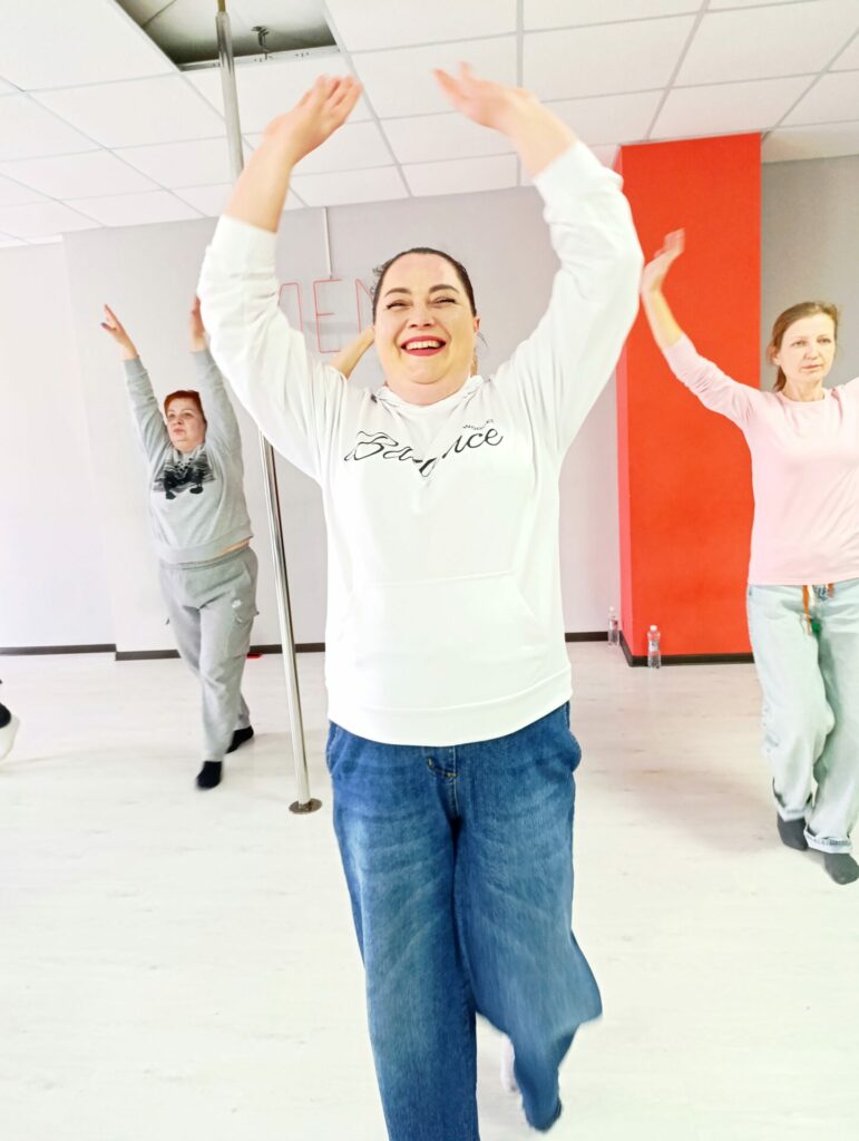 Професійний хореограф показував рухи, підтримував і допомагав розслабитися. Без тиску і без «треба правильно» — кожна рухалась так, як відчуває.