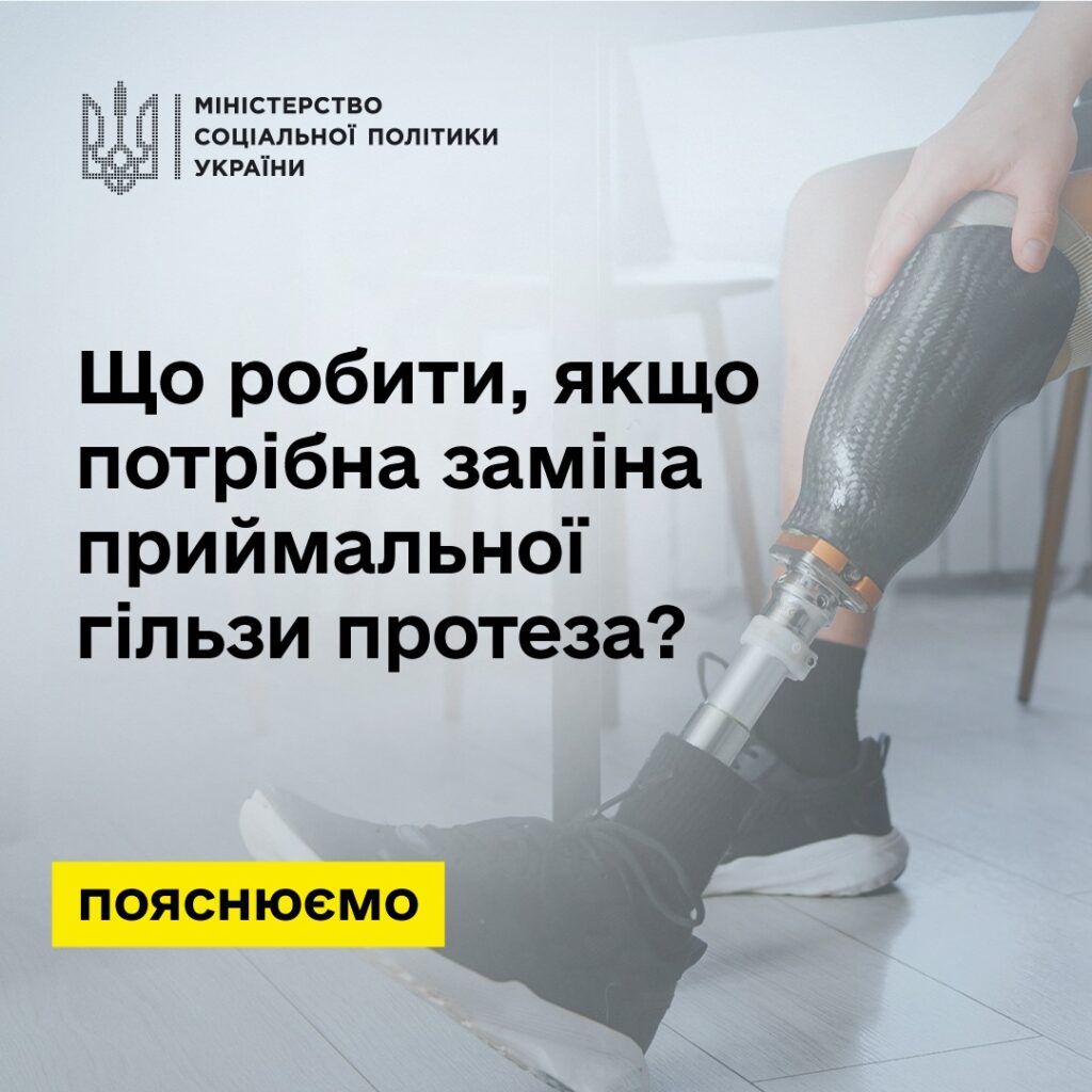 Держава гарантує якісні протези, їх обслуговування та ремонт. Виготовляють протези із сучасних іноземних складових за новітніми технологіями.Важливо! Для отримання протеза військовими та цивільними, які постраждали внаслідок війни, чекати встановлення статусу інвалідності не потрібно.У візуальному ряді інфографіка про процедуру зміни приймальної гільзи протеза.
