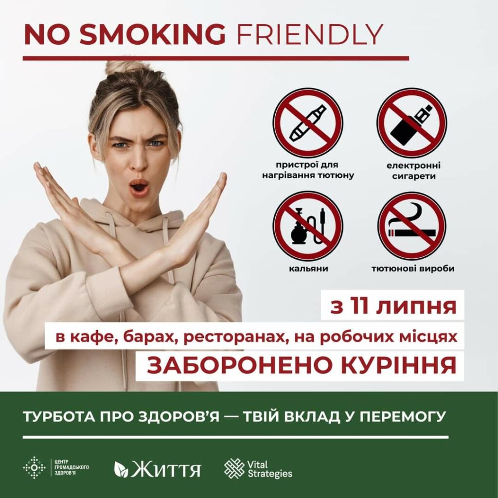 Під час війни, коли навкруги і так повно ризиків, особливо важливо дбати про здоров’я – як своє, так і одне одного. Тому ми звертаємо вашу увагу:” Не куріть і ретельно дотримуйтеся антитютюнового Закону”.