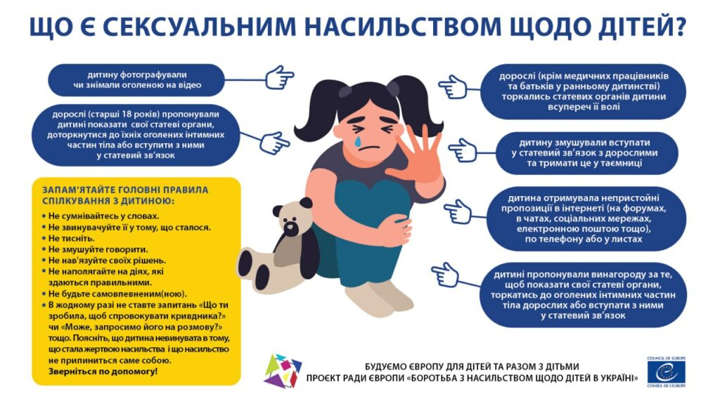 З 2012 року Україна є учасницею Конвенції Ради Європи про захист дітей від сексуальної експлуатації та сексуального насильства (Лансаротська конвенція). Лансаротська конвенція – це перший регіональний договір, спеціально присвячений захисту дітей від сексуального насильства, яке може відбуватися, в тому числі, вдома і в сім’ї.