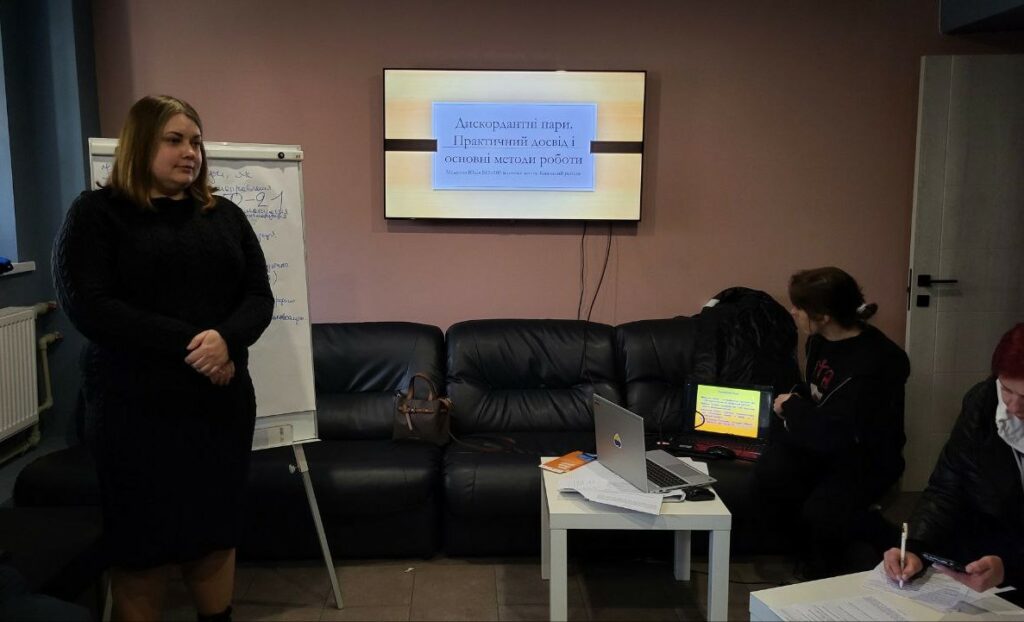 Це був навчальний захід для спеціалістів соціальної сфери м. Києва «Соціальна робота з дискордантними парами (людьми з різним ВІЛ-статусом)», організатором якого виступив Київський міський центр соціальних служб за підтримки БО «100 відсотків життя. Київський регіон», БО «Позитивні жінки», ГО «Клуб «Еней».