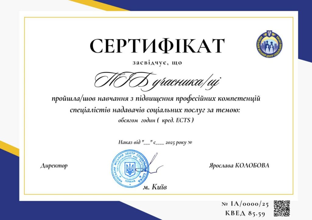 Ми створили Електронну систему щодо унормування сертифікатів виданих Київським міським центром соціальних служб. Тепер у зручному режимі Ви завжди зможете перевірити вірність виданих сертифікатів щодо участі у навчанні тут на сайті. А з квітня посилання на перевірку містиметься у QR- коді на самому сертифікаті.
