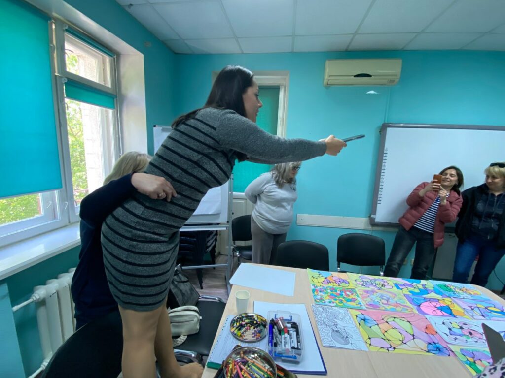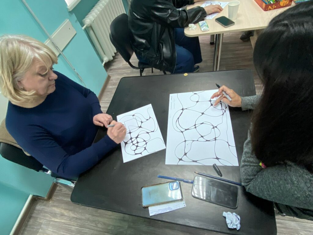 Фахівці  працювали за методом нейрографіки – одним з методів арт-терапії, який сприяє зменшенню стресу, тривоги, опрацювує емоційні блоки і є ефективним і в груповій роботі через візуалізуалізацію негативних думок та емоції, перетворюючи їх на графічні образи та гармонійні композиції. Під час малювання залучаються різні зони мозку, активуються творчі процеси, що допомагає знаходити нестандартні рішення та досягати емоційного балансу.