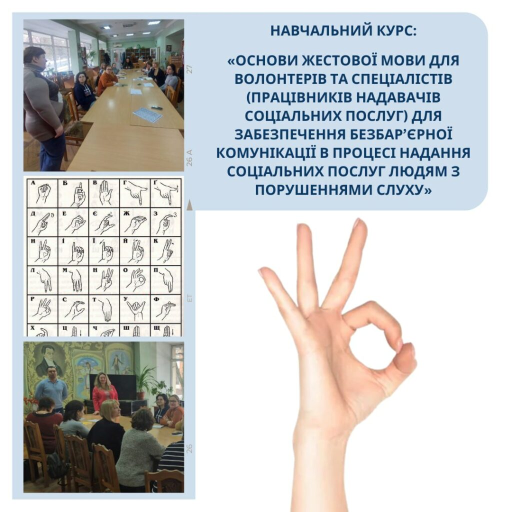 Нещодавно стартував навчальний курс: «Основи жестової мови для волонтерів та спеціалістів (працівників надавачів соціальних послуг) для забезпечення безбар’єрної комунікації в процесі надання соціальних послуг людям з порушеннями слуху».