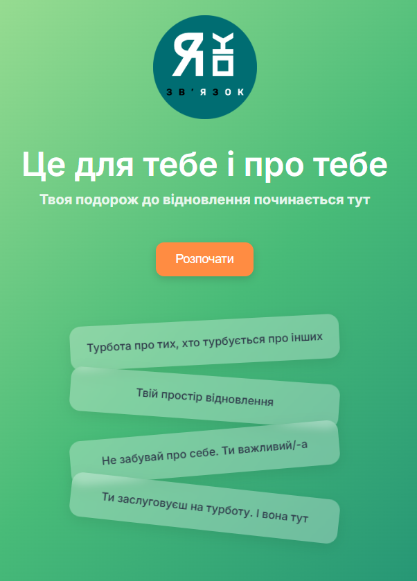 В межах реалізації проекту «Зміцнення національних та місцевих механізмів запобігання та реагування на СПК в Україні» розроблено цифровий застосунок «Зв’ЯЗОК» – інтерактивний інструмент для підтримки психоемоційного стану фахівців, які працюють із постраждалими від насильства за ознакою статі та СНПК. Застосунок дозволяє зменшити симптоми професійного вигорання, зберегти емоційний ресурс та зміцнити внутрішню стійкість.